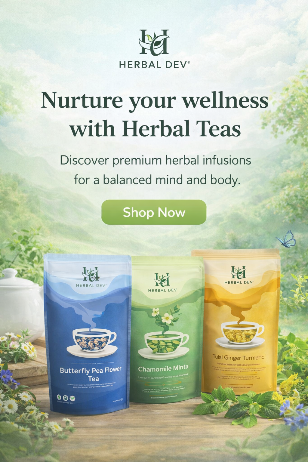 Made from the vibrant petals of the Clitoria Ternatea plant, known as Aparajita in Sanskrit, Butterfly Pea Flower Tea is a natural powerhouse of antioxidants. Our premium herbal blend combines authentic ingredients with modern wellness to bring you the perfect cup of wellness in every sip.